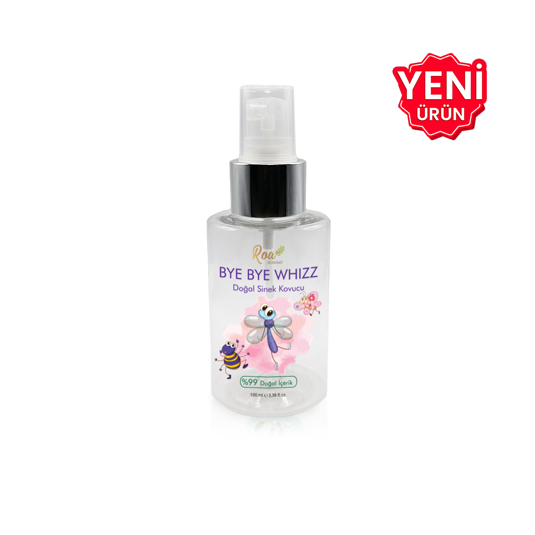 Özellikler: Bye Bye Whizz doğal bileşenlerden oluşmaktadır. Bu nedenle insanlar ve evcil hayvanlar için oldukça güvenlidir. Ihtiyaç halinde sinek, haşere vb. canlıları uzaklaştırmak için ev ve otomobil içerisinde uygulayabilirsiniz.Uyuz kaşıntısını hafifletmeye yardımcı olur.Çevre dostudur. Doğal maddeler kullanılarak üretildiği için doğada kolayca çözünebilir. Paraben, Silikon, SIs, Sles içermez. Sinek, haşere ısırıklarının kaşıntısını hafifletir. Hiçbir canlıya zarar vermez.