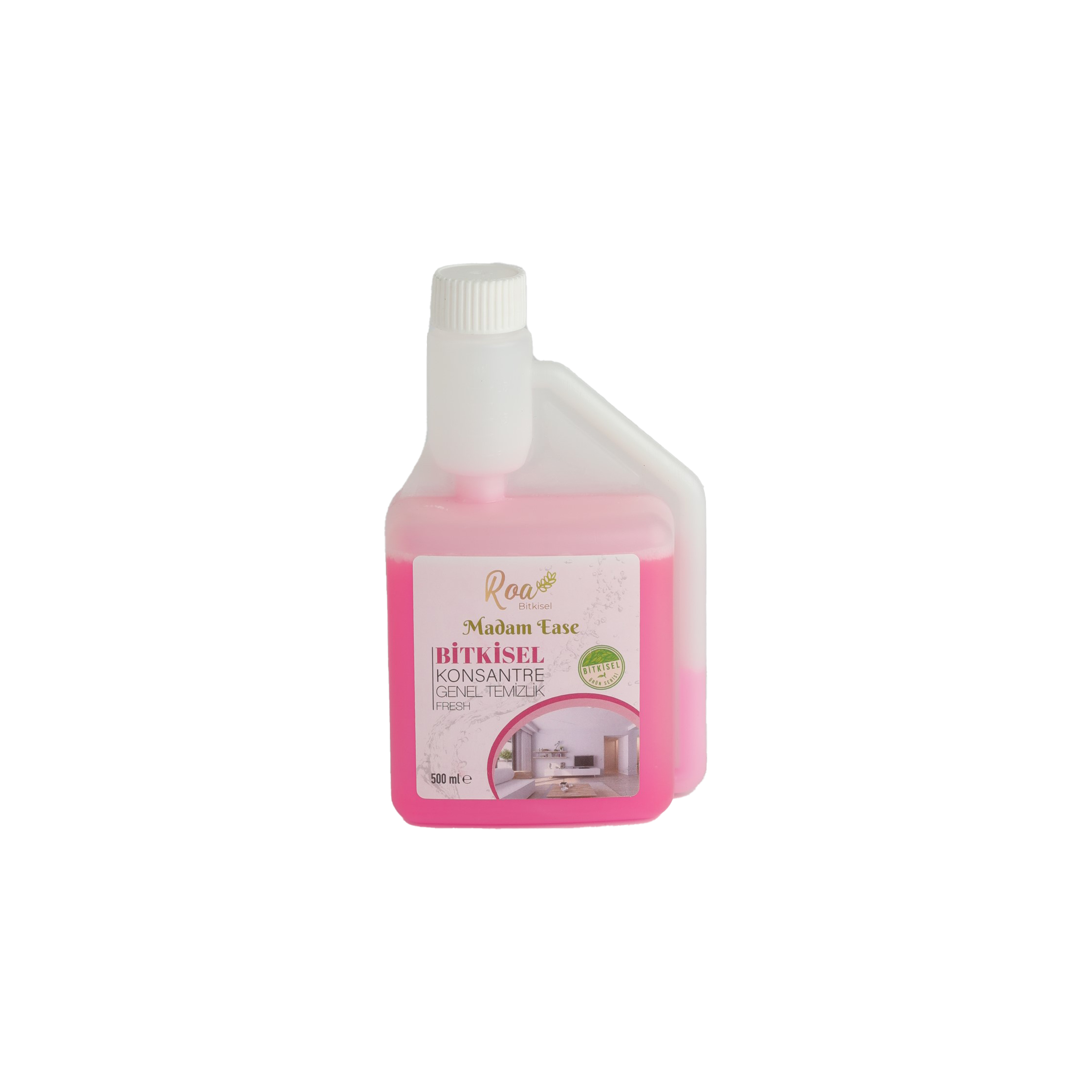 ROA Bitkisel Genel Temizleyici, konsantre yapısı ile silinebilir tüm yüzeylerin temizliğinde kullanılır. Kire hızla nüfuz eder, kalıntı bırakmadan temizler. 5 litre suya (15 ml.) ilave edilerek yüzeyler silinir.15°C üzerinde saklayınız. Zararlı kalıntı bırakmaz. İçeriğindeki tüm hammaddeler doğada biyolojik olarak parçalanır. İçeriğindeki çiçek kokuları ile ortamda hoş bir koku bırakır.