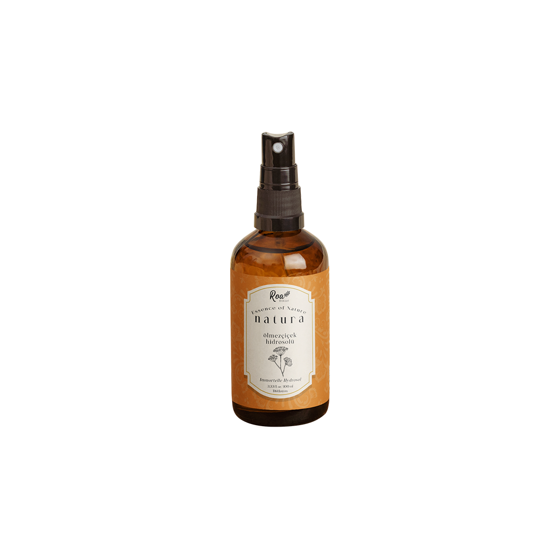 Ölmezçiçek (Helichrysum italicum) bitkisinden buhar distilasyonu ile elde edilmiş doğal Ölmezçiçek Suyu.